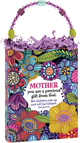 - A bright and coordinated beaded handle and festive paper finish off the gift bag look