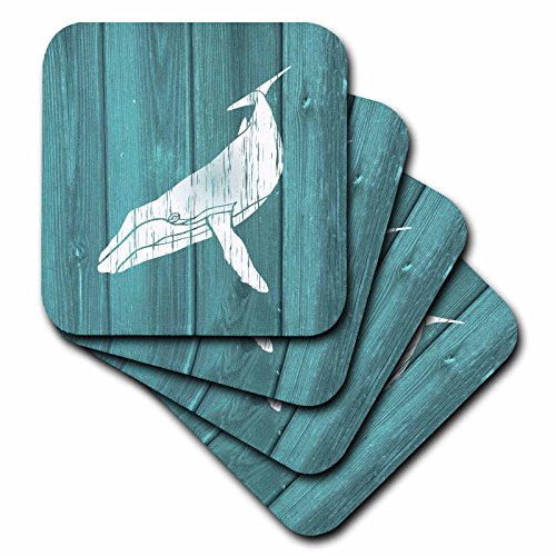 3dRose Humpback Whale Stencil In Faded White Paint Over Teal- Not Real Wood - Soft Coasters, Set of 8 (cst_220427_2)