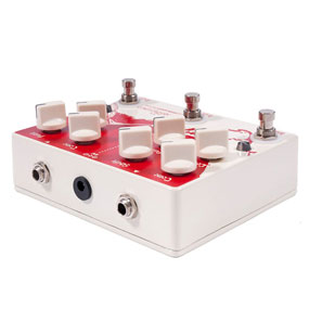 The Hoof is a no-fuss, easy to use device capable of sounds from warm, gritty overdrive to a huge sustaining fuzz. It’s a germanium/silicon hybrid muff style fuzz (based on the old green russian muff) with massive amounts of volume on tap and smooth amp-like sustain. It has a tighter, cleaner sound than most muff’s which makes it more cutting and discernible in a band setting. The shift control is the key to the Hoof’s character, it alters the frequency response of the tone control. Clockwise scoops the mids and counterclockwise enhances the mids. The Hoof has become the go-to fuzz for many well-known fuzz connoisseurs.