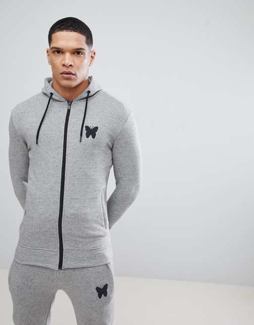 Good For Nothing Muscle Butterfly Hoodie In Gray