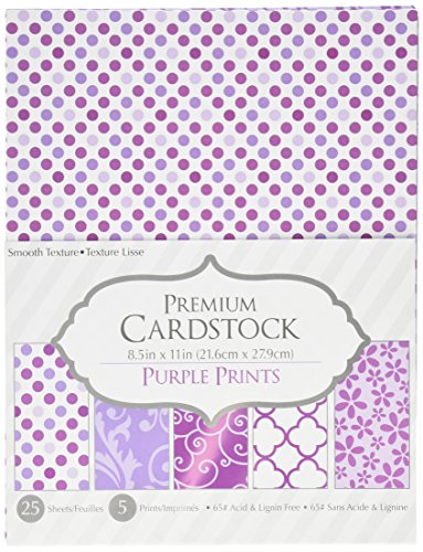 Darice Patterned 8.5 by 11 Cardstock Paper Pack, Purple Prints, 25 Piece