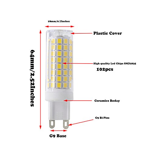 - 7.5 Watts g9 75-100W traditional bulbs replacement, Warm white, 102pcs high brightness 2835 Led chips.