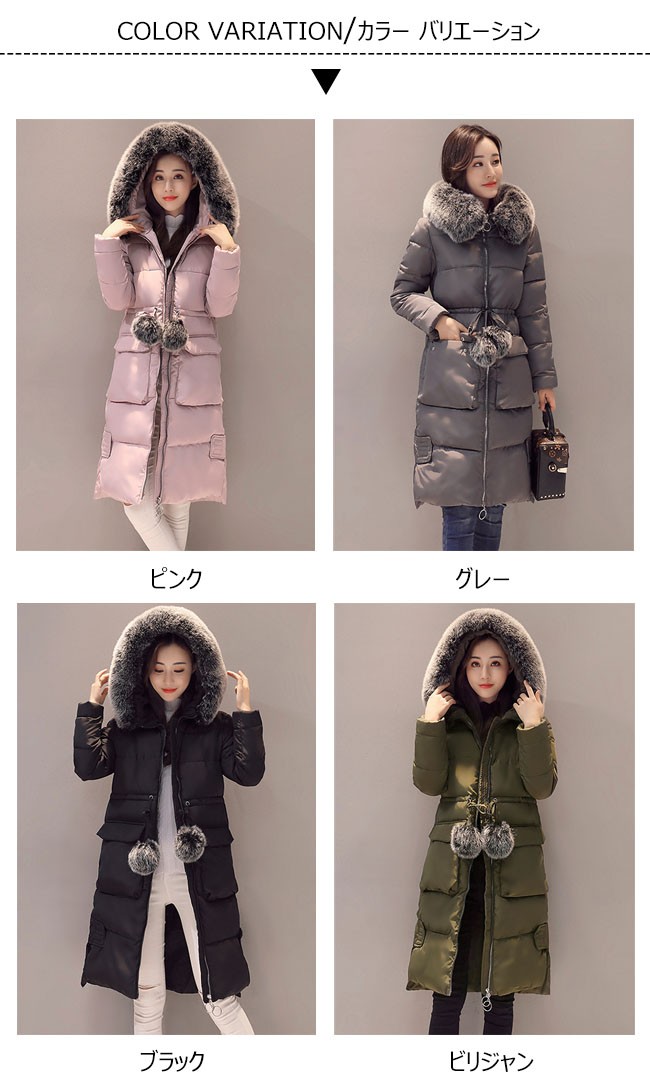 | 商品名 | 中綿コート 中綿アウター 中綿ジャケット 秋冬コート 秋冬アウター レディース フード付き ファーフード 体型カバー 大きいサイズ 羽織り 防寒 軽量 2017秋冬新作 |