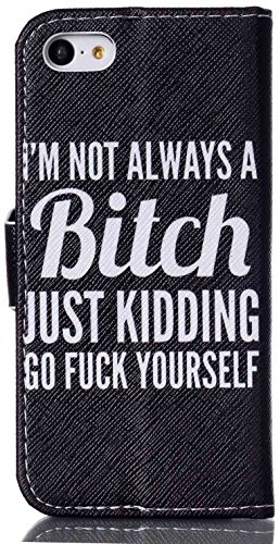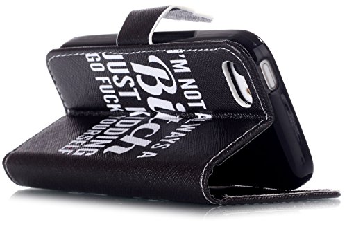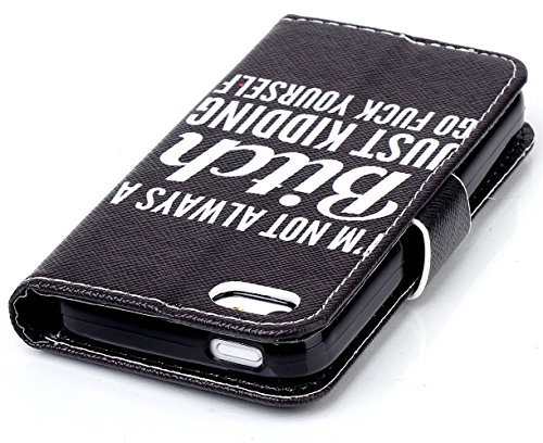 iPhone 5C Case , Magnetic Color Print Leather Flip Wallet Case with Credit Card Slots Cash Stand WIITOP@ for Apple with 1 Stylus Pen ( Bitch )