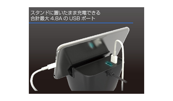 ●USBポート1ポート最大2.4A出力、2ポートで最大出力合計4.8A(4800mA)のハイパワー