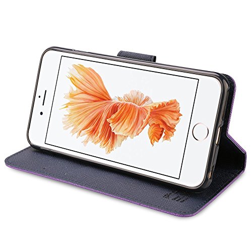 iPhone 6 6S Case 4.7 Inch, iPhox [Cross Pattern][Purple/Blue] Wallet Case ID Credit Card Cash Slots Premium PU Leather Case with Stand Flip Cover Protector for Apple iPhone 6 6S 4.7"--PL/BU
