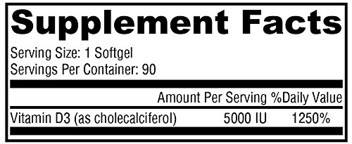 -. Feature : Bioidentical form of vitamin D3 synthesized in the body following activation by UV rays in sunlight / One softgel serving provides 1250% daily value / Supports bone and dental health, modulation of immune system, healthy cell differentiation, neurologic and cognitive health, cardiovascular health, and healthy blood sugar metabolism / Does not contain wheat, gluten, corn, yeast, soy, dairy products, fish, shellfish, peanuts, tree nuts, egg, artificial colors, artificial sweeteners, or preservatives. / Contains 90 x softgel capsules (90 servings)