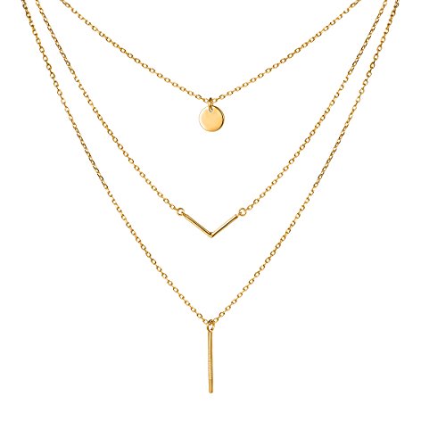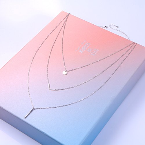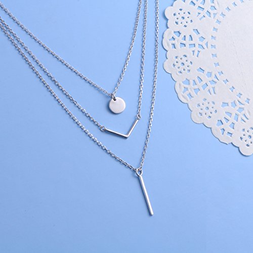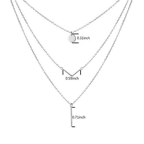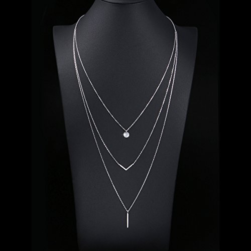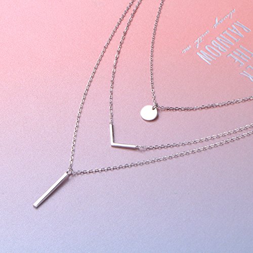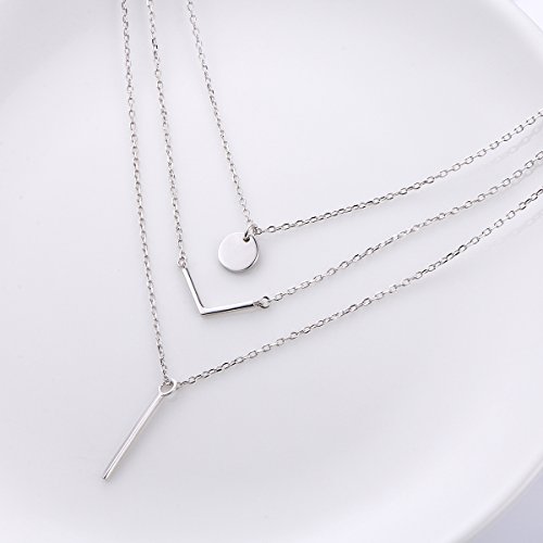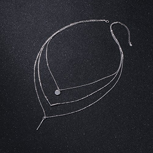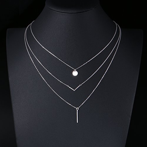 -. Title : S925 Sterling Silver Triple Layer Pendant Choker Necklace for Women