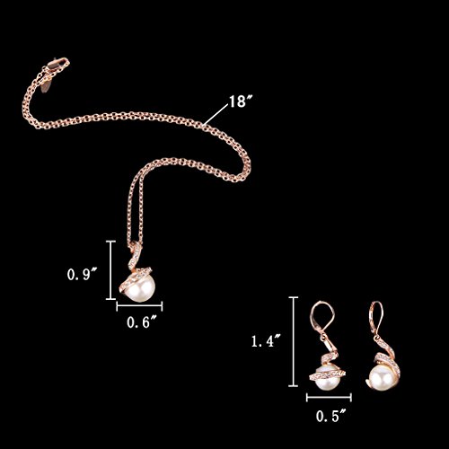 Crystal Color: Clear; Simulated Pearl Color: Ivory Color; Chain Length: 17.1in-19.6in, Pendant Size: 0.6in by 0.9in, Earring Size: 0.5in by 1.4in; Total Weight: 10g
