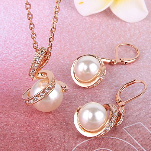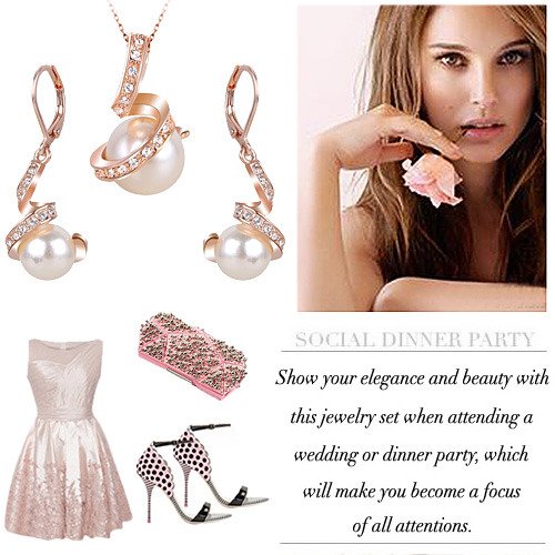 Made of crafted environmental friendly Austrian Crystal, Simulated Pearl, this jewelry shines with grace and beauty. And the metal surface is of high polished finish.