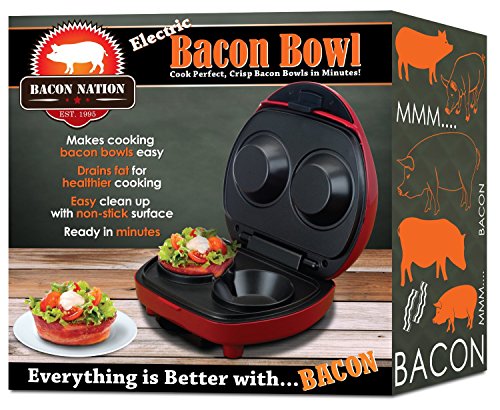 Everything is Better with Bacon! Cook perfect, crisp bacon bowls in minutes! Top wit your favorite toppings! Makes cooking bacon bowls easy! Drains fat for healthier cooking! Non stick cooking surface for easy clean up.