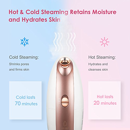- COLD & HOT STEAMING TO HYDRATE SKIN: With a 10 mm diameter nozzle, it provides broad coverage and consistent steam; 70-minute cold steaming calms skin that is sensitive, sunburned or has acne; 20-minute hot steaming hydrates and cleanses skin, especially during dry seasons of autumn and winter