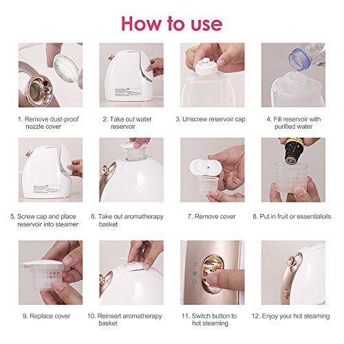 - A NEW ERA OF FACIAL STEAMING: Combines multiple functions in one device; use the nanoionic steamer with adjustable nozzle for cold/hot steaming and essential oil steaming; attractively packaged to make a great gift for girlfriends, wives, mothers and other loved ones