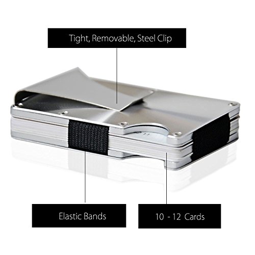 -. Title : Super Slim Aluminum Wallet, RFID Blocking, Steel Money Clip, Holds 10-12 Cards, Prevents Scanning & Theft, Minimalist, Not Bulky, For Comfortable Back Pocket Carry, Built-in Money Clip