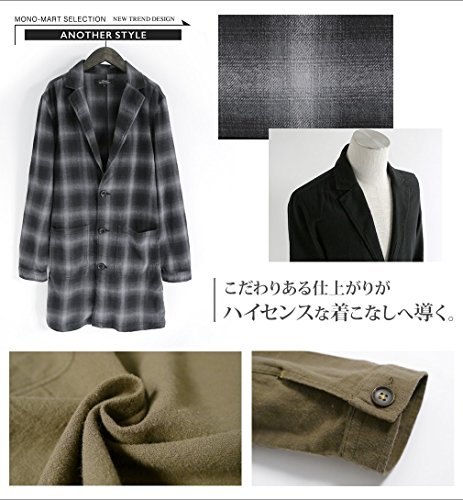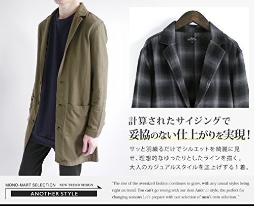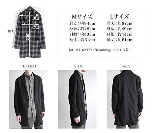 -. Feature : 【素材】綿100% / 【カラー】カーキ・ブラック×グレー/チェック・ブラック / 【Mサイズ】着丈:約84cm、身幅:約48cm、肩幅:約43cm、袖丈:約61cm / 【Lサイズ】着丈:約87cm、身幅:約49cm、肩幅:約44cm、袖丈:約61cm / モデル身長178cm 体重60kg Lサイズ着用