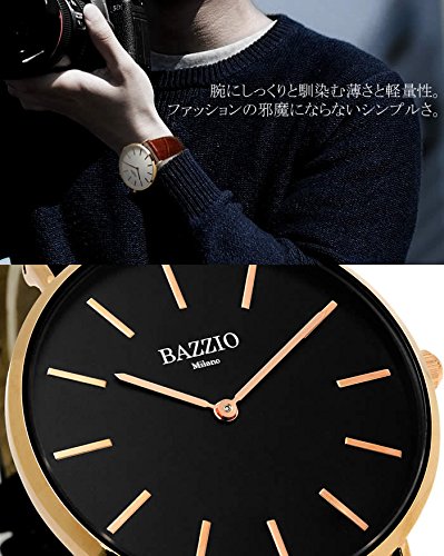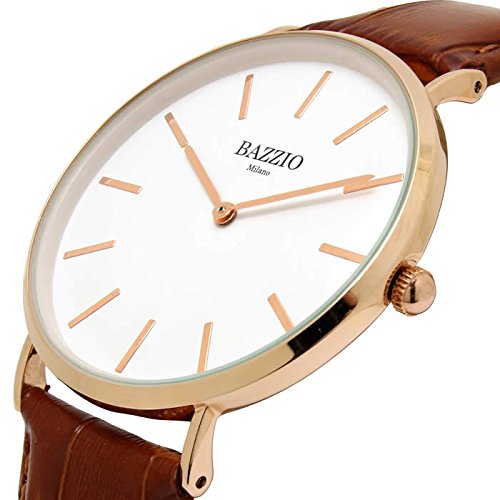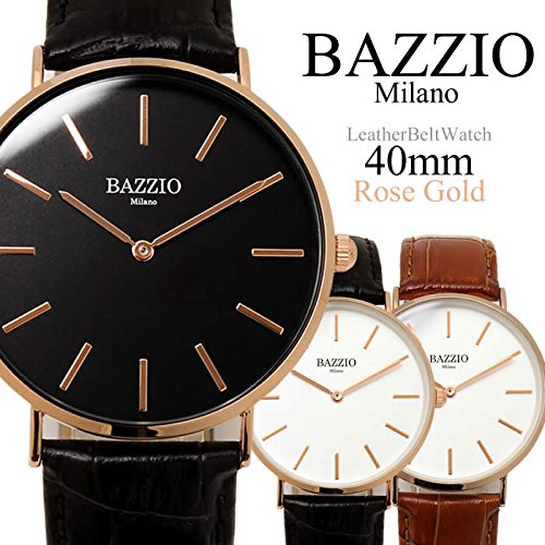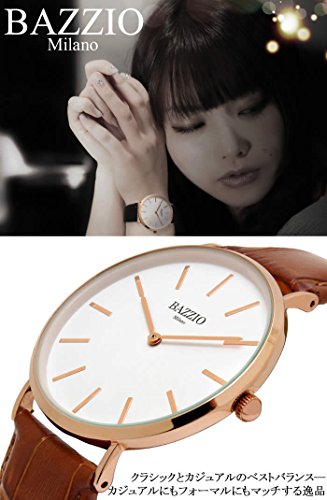 배지《오》 [배지오]BAZZIO 손목시계 쿼츠 가죽 벨트 레더 초박형 40mm 유니섹스 맨즈 레이디스 FAL50509G 브라운 화이트 로즈 골드 [병행수입품]