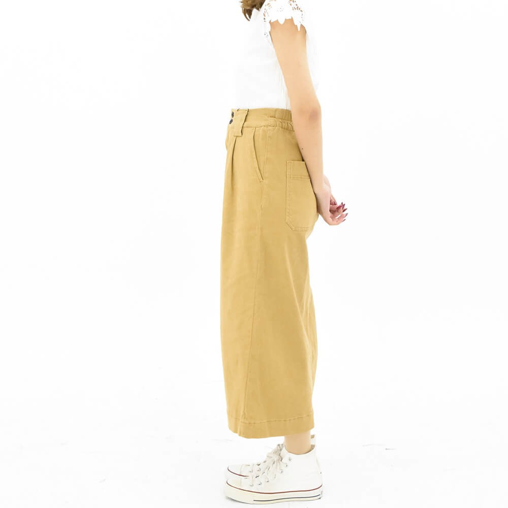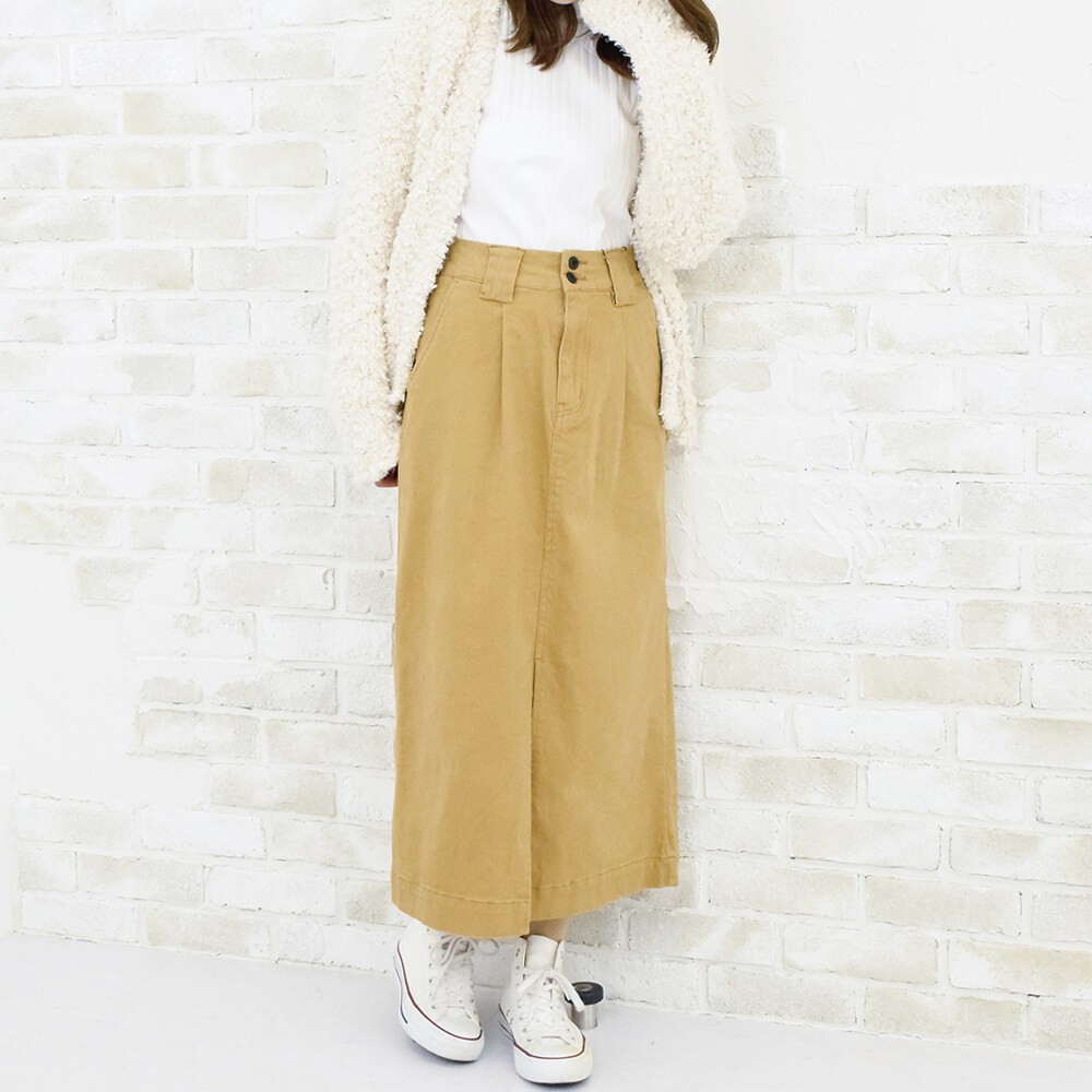 【商品説明】軽くビンテージっぽい風合いの生地質が特徴です。表面はやわらかみがあり、何気ない女性らしさを演出してくれるスカートです。比較的ゆとりのあるシルエットラインと、フロントのスリット、ストレッチの効いた素材で、タイトでも動きやすいのがポイントです。シーズンレスでも使えますが、真冬にはレギンスなどと合わせて着用すると良い生地感です。【規格】■生産地:中国■素材・成分:綿100%【注意事項】【店舗紹介】国内外のメーカー商品を取り扱うファッション専門店です。商品や発送等、お気軽にご相談下さい。ファッション専門店WISE-SHOP