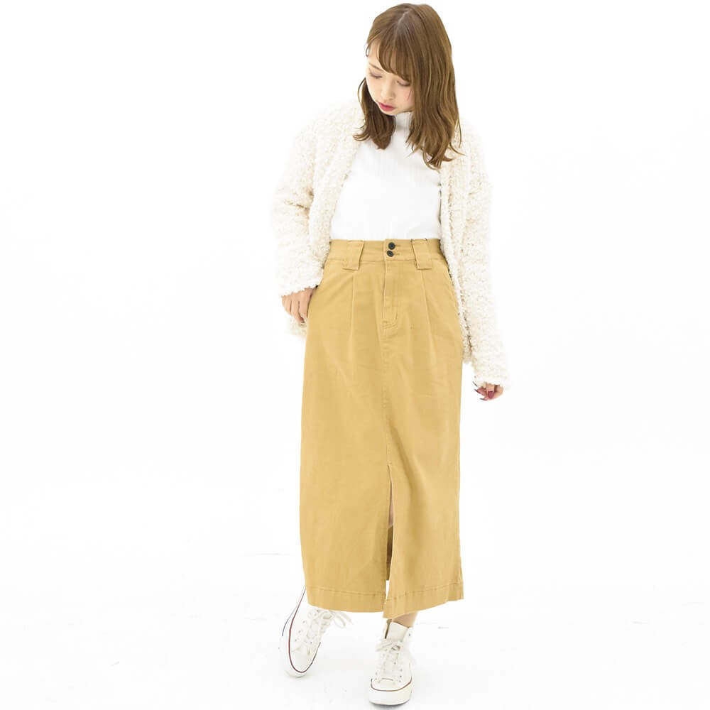 表面はやわらかみがあり、何気ない女性らしさを演出してくれるスカートです。