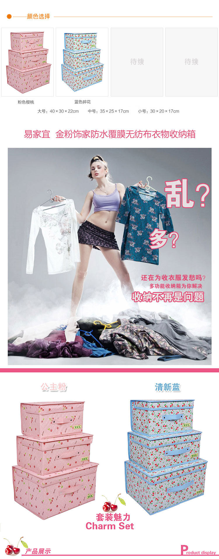 New fashion style? cute cherry print? waterproof coated non-woven? effective dustproof and waterproof mildew infestation. No interval within the design? more space? more storage.