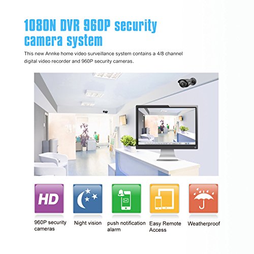Annke New 8CH 1.3Megapixels Surveillance DVR System and (4) 960P(1280x960p) CCTV Metal Cameras with 100ft Night Vision, 5-in-1 1080N DVR Recorder with P2P Technology, Motion Detection, NO HDD