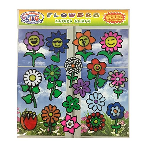 Flowers Gel Clings for Kids and Adults (17 Piece Set) - Sunflower, Rose, Tulip, Daisy and More 3D Vinyl Window Clings - Reusable on Glass Surfaces, Smooth Walls, Flower Vases, Pots, Classrooms and Mor