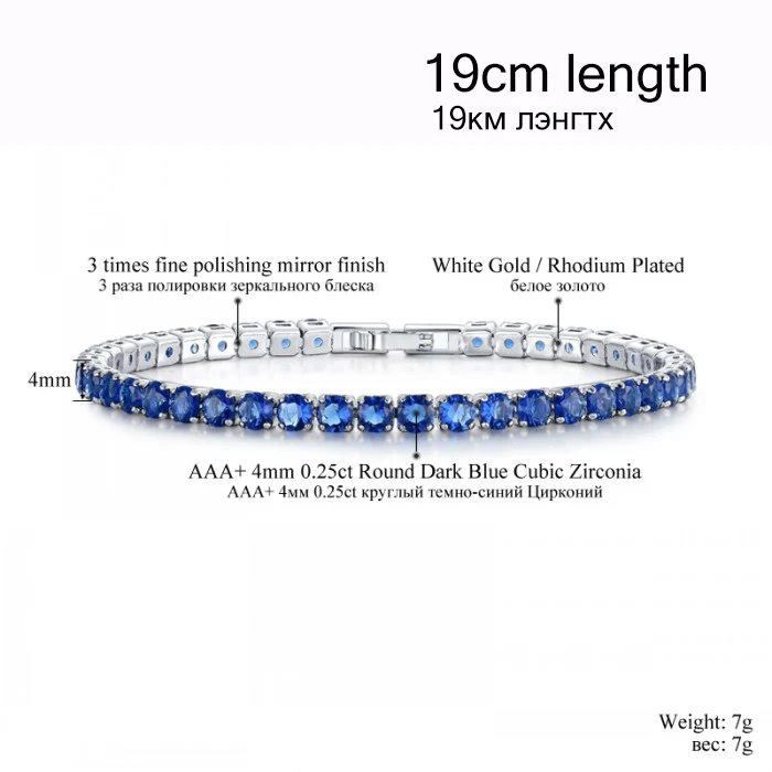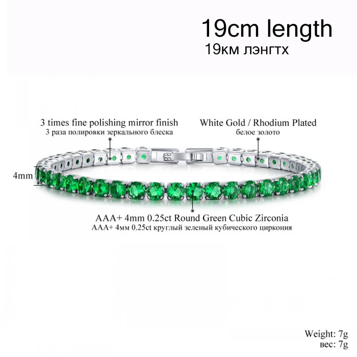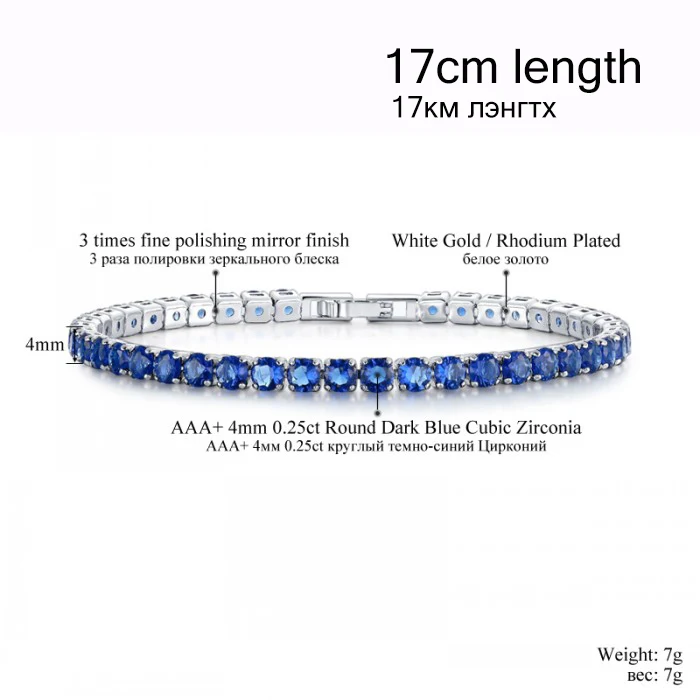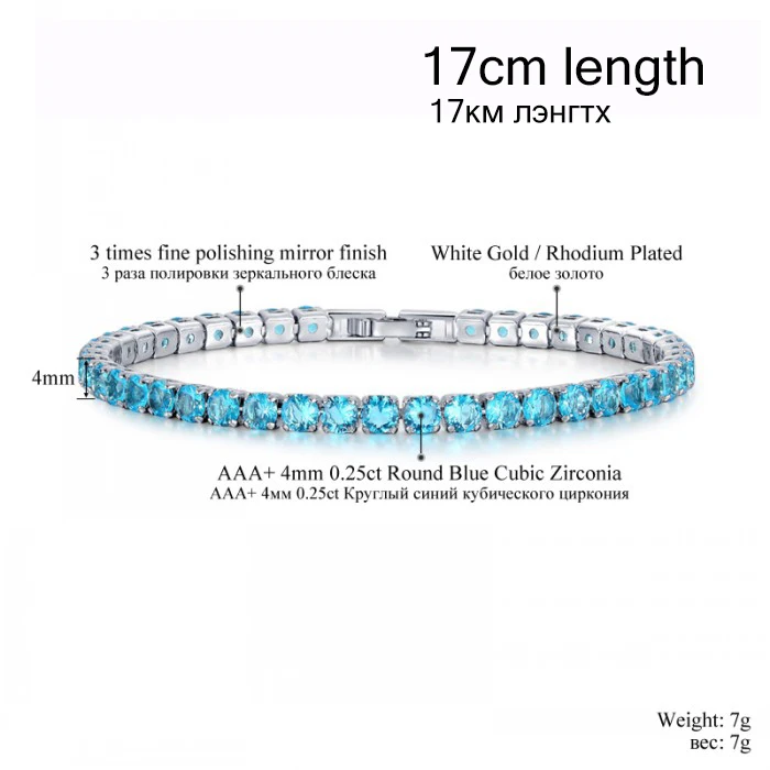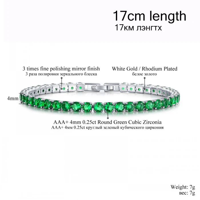 cz stone bracelet color:rose red / green / blue / clear white crystal bracelet chain