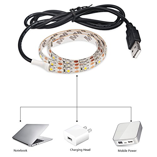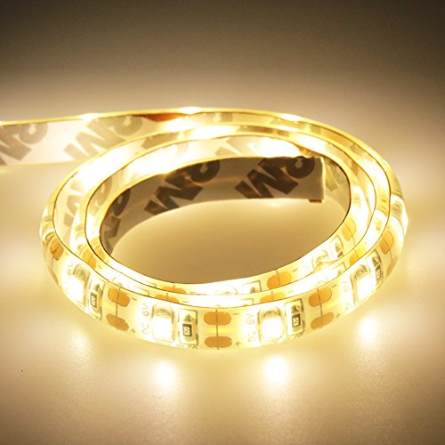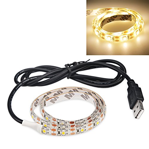 FISHBERG 50CM Waterproof Flexible USB LED Strip Lights 3528 SMD 30 Leds TV Background Lighting Kit w/5V USB Cable (Warm White)
