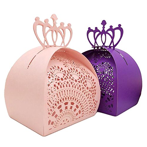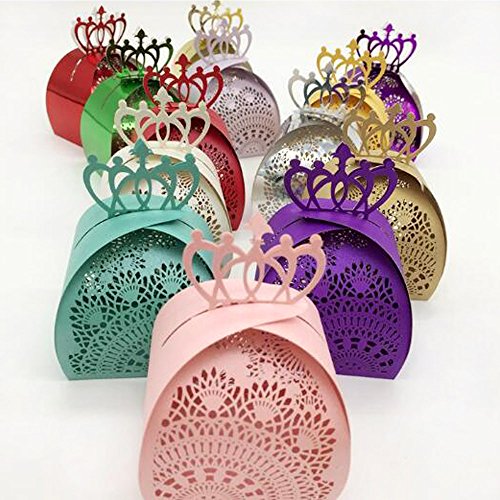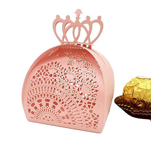 WOMHOPE 50 Pcs - Crown Hollow Lock Candy Box Laser Cut Roses Flowers Candy Box Chocolate Candy Wrappers Party Favors for Bridal...