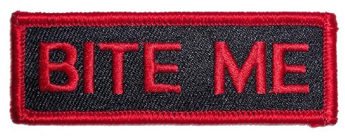 -. Feature : This lady biker patch features "Bite Me" in red lettering / Top quality embroidered biker patch can be sewn or ironed on / Great patch for leather or textile jackets, vest, caps, whatever you can think of / Measures 3 inches wide by 1 inch high / This sexy lady rider patch is perfect for a vest or jacket, check out my other patches