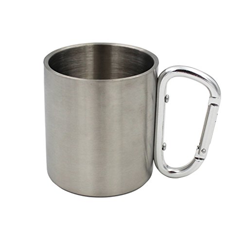 - HANDLED CAMPING MUG: This high-quality premium stainless steel camping mug has a unique carabiner handle, saving space and allowing you to easily attach the mug to the outside of your backpack.