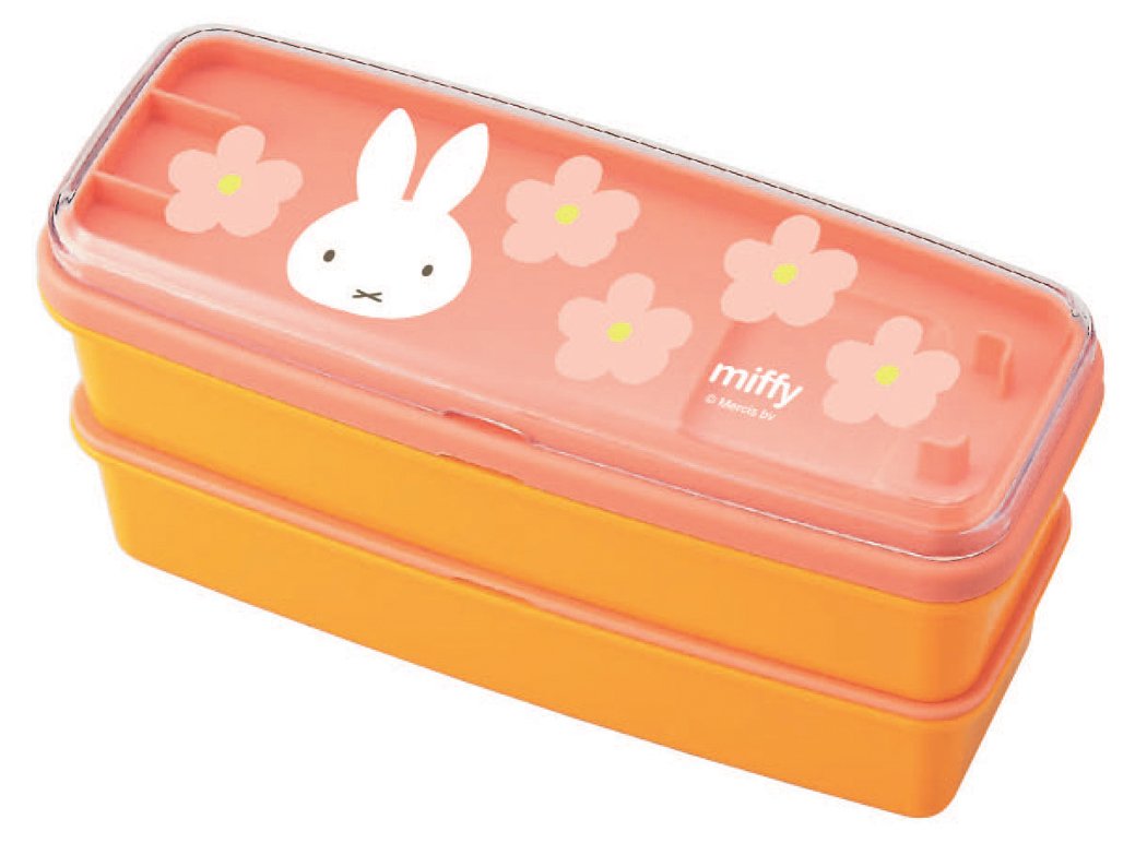● Slim shaped 2-stage lunch box easy to put in a bag