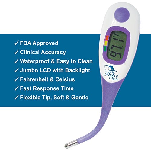 ✔ JUMBO LCD DISPLAY WITH BACKLIGHT for easy reading whether in daylight or in the dark of night. MERCURY FREE silver tip measures Fahrenheit or Celsius with clinical accuracy.
