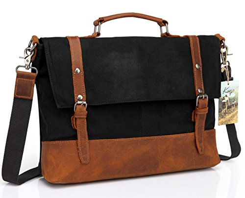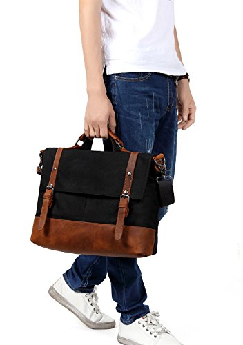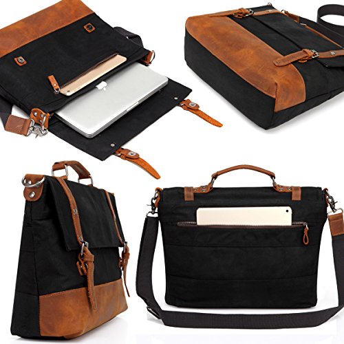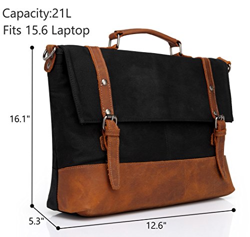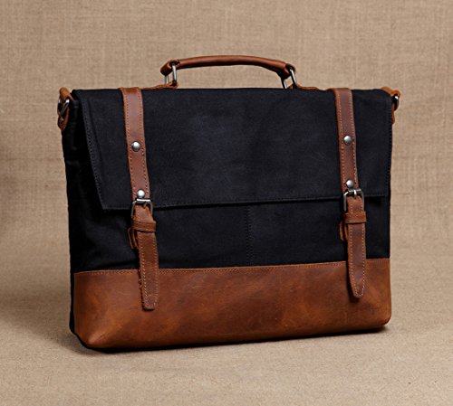 WAXED CANVAS:Made of 100% 14 OZ heavy weight ,rugged, heavy-duty, weather-resistant waxed cotton canvas.Pack bottom ,trim and top handle made of genuine leather.Reinforced leather patched the waxed canvas makes the messenger bag looks elegant, casual, chic and fabulous.