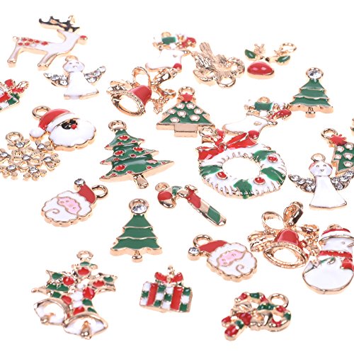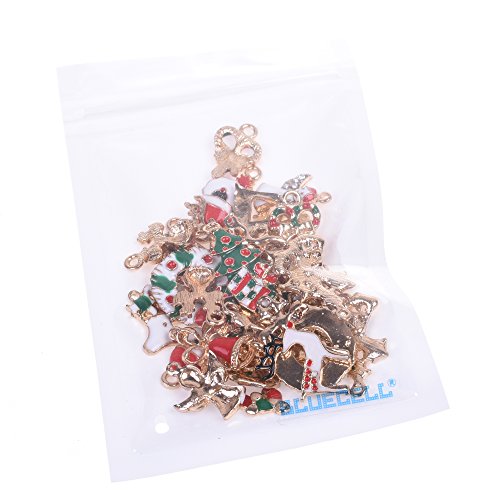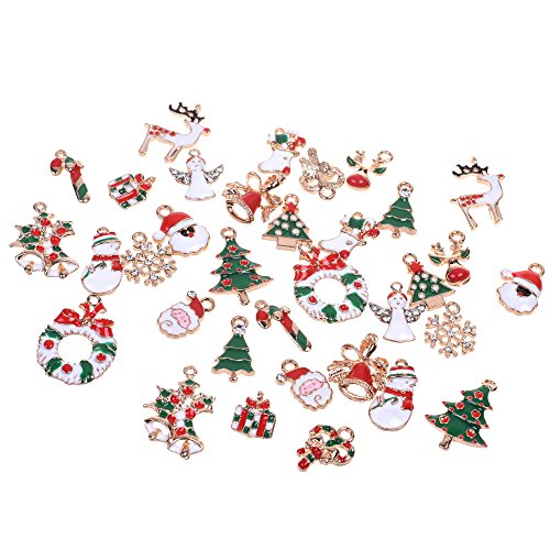 BCP 34pcs Mixed Style Christmas Tree Snowman Snowflake Deer Bell DIY Enamel Christmas Charms Decorations Pendants