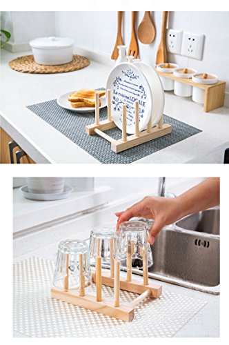 Bamboo Plate Rack/Pot Lid Holder/Pots / Pans / Cup / Book / Cups Dish Drying Rack Drainer Storage Organizer /Multi-Purpose Bamboo Plate Holder and Pot Lid Organizer