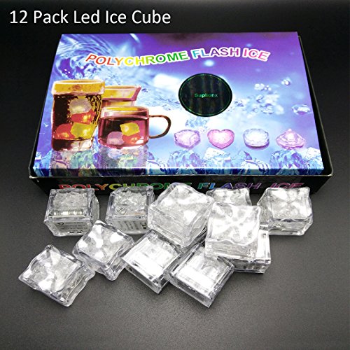 12PCS IPX7 Waterproof Led Light Flashing Multi-Color Liquid Sensor Ice Cube Lights for Bar Club Drinking Party Wine Wedding Decoration (12)