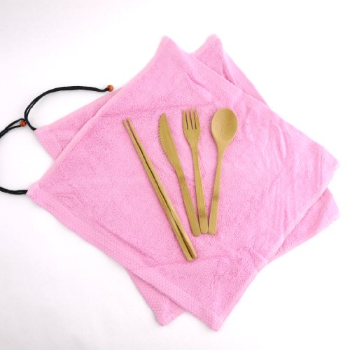 BambooImportsMN Travel Utensils with 2 100% Rayon from Bamboo Washcloth Wraps - 1 set, Fuscia