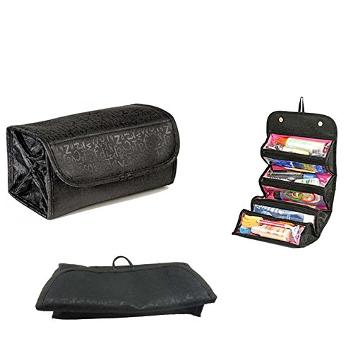 -. Title : Toiletry Travel Bag Case - Roll up Organizer: Cosmetics, Jewelry, Accessories, Electronics
