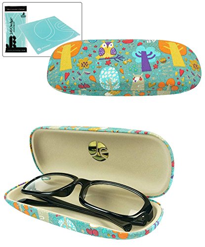JAVOedge Foxy and Owl Pattern Eyeglass / Reading Glass Hard Case and Bonus Microfiber Cleaning Cloth