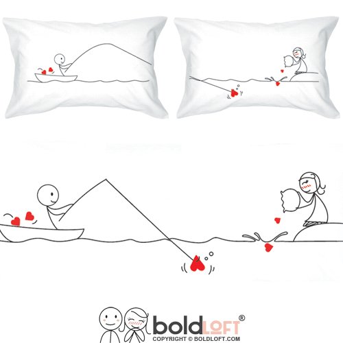 BOLDLOFT Catch My Heart His and Hers Matching Couple Pillowcases-Long Distance Relationship Gifts, Valentines Day Gifts, Long Distance Couples Gifts, His and Hers Gifts, Gifts for Boyfriend Girlfriend