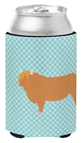 Caroline's Treasures BB7994CC Highland Cow Blue Check Decorative, Can Hugger, Multicolor