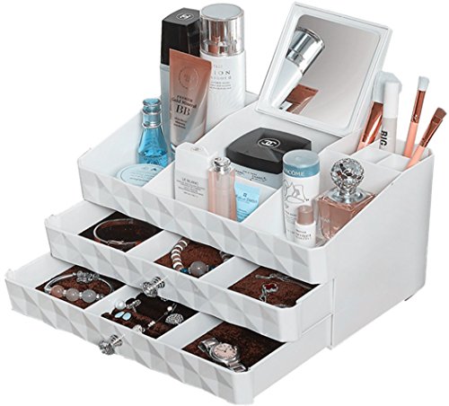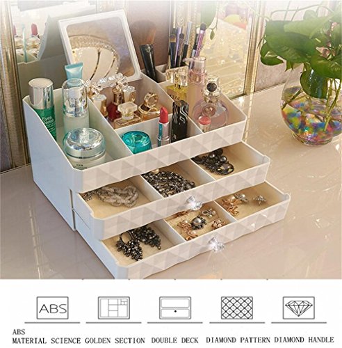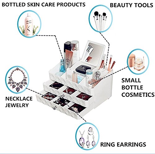 MaxKim Makeup Jewelry Organizer 2 Drawer with 15 Compartments and mirror for Cosmetics, Jewelries, Cosmetic Storage Box(xl)