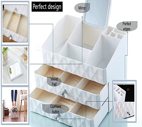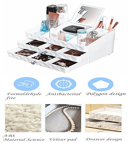 MULTI-DIMENSIONAL POINTS DESIGN-This is a mobile cosmetic box, like a cosmetics and jewelry Plaza, here, you will not be confused and troubled, with this MaxKim Cosmetic storage box, we solve all your troubles. The stacked drawers allow you to see a new, more space containing box, enough to get your stuff together. Exquisite display let you become more perfect.