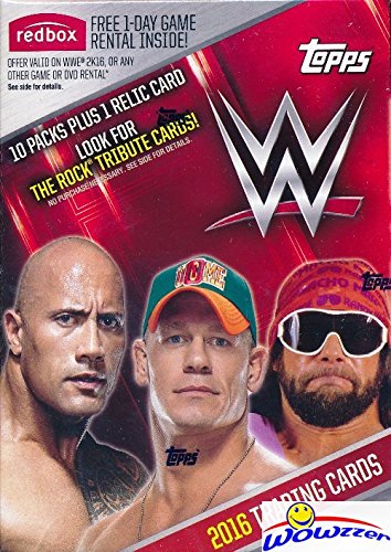 2016 Topps WWE Wrestling EXCLUSIVE Factory Sealed Retail Box with 10 Packs, RELIC Card & THE ROCK Tribute Card! Look for Cards ,Autographs & Relics of Jon Cena,Triple H, Sting, Ric Flair & Many More!