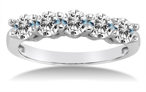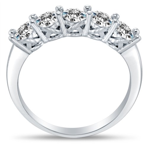 - Title : Size 8.5 - 2.5mm Solid 14K White Gold Round Cut Highest Quality CZ Cubic Zirconia Five 5 Stone Womens Ladies Classic Traditional Wedding Band Ring (2.0 cttw.) - Available in all ring sizes 4 - 13