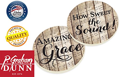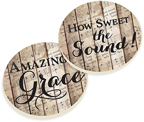 Amazing Grace How Sweet the Sound on Faded Sheet Music 2 Piece Ceramic Car Coaster Set