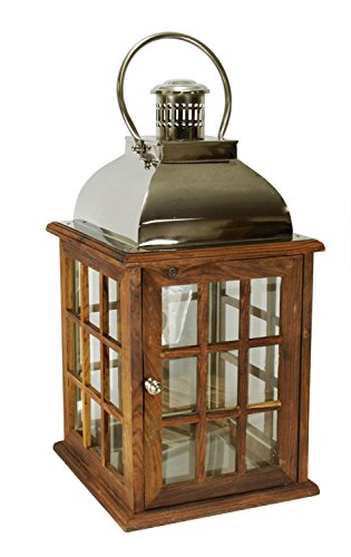 -. Title : 30" Oversized Modern Sheesham Wood Candle Lantern with Silver Metal Handle