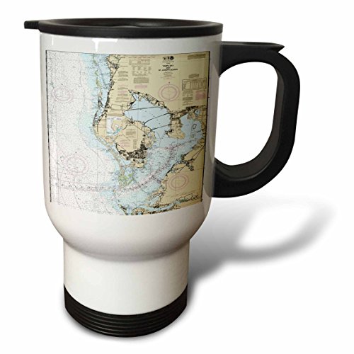 3dRose tm_214251_1 Print of Nautical Map of Tampa Bay Stainless Steel Travel Mug, 14 oz, White