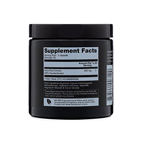 -. Feature : THE HEALTHY POLYNESIAN ALTERNATIVE TO ALCOHOL & CAFFEINE - Reap the benefits from one of nature's most potent anxiety relievers. Traditionally utilized in rituals and ceremonies by Pacific Islanders for thousands of years, Kava extract is commonly used today to produce relaxation and euphoria without affecting mental clarity.* / HIGHEST POTENCY FOR SUPERIOR RESULTS - Toniiq's Kava has the highest available potency at 30% Standardized Kavalactones per serving (far more than most available kava tea, kava kava powder, kava root powder, and kava root capsules). Kavalactones are the best known active compound of Kava, and have been attributed with numerous health promoting properties linked to its mood-supporting capabilities.* / FAIR TRADE, ORGANIC, ALL NATURAL - Our organic Kava is non-GMO, has no additional preservatives and is free of gluten, soy, milk, egg, shellfish, corn, wheat, and peanuts. Made in a FDA registered facility adhering to strict GMP (Good Manufacturing Practices), right here in the USA. / TONIIQ MONEY BACK GUARANTEE: We always hope you're happy with your new Organic Ginseng, but if you've had anything less than a first-class experience, we'll refund your money back, no questions asked.
