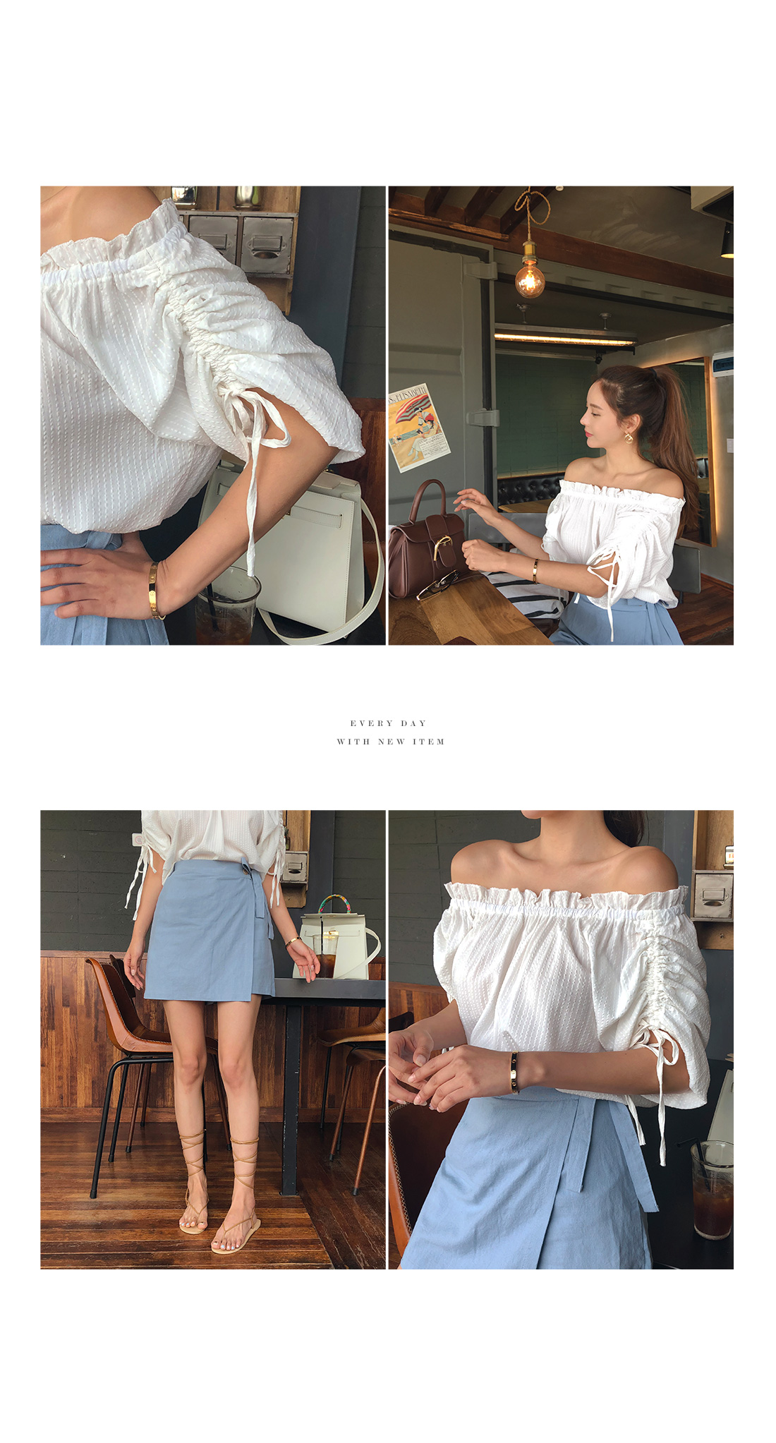MD COMMENT 여리여리한 쇄골라인을 연출해 줄 오프숄더 블라우스 소개할게요.오프숄더 디자인으로 쇄골라인과 목선을 드러내어여리여리하면서 은근 걸리시한 분위기를 연출해준답니다.숄더라인에 쫀존한 고무 밴딩으로 안정감 있는 착용과 함께 편안하게 즐기기 좋아요.면혼방 소재로 S/S시즌 시원하게 좋답니다!깔끔한 디자인으로 어디에나 두루두루 매치가 좋아 데일리하게 즐기기 좋으며모델이 착용한 것처럼 숏한 큐롯팬츠나데님 팬츠, 스커트 등 다양한 하의와매치하여 멋스러운 스타일을 완성할 수 있답니다!소매스트링으로 소매기장을 살짝 조절할수 있으며다양한 느낌으로 입을수 있어 활용도 높아요^^COLOR/SIZE 아이보리,핑크FREEMODEL FITTING 아이보리/FREE